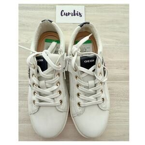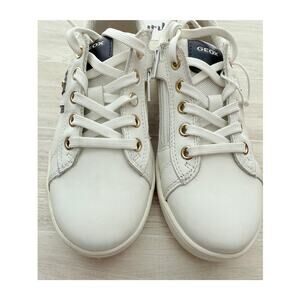 These trendy GEOX Respira sneakers. Designed with a low top shoe shaft style, these casual shoes come in a classic white color with lace and zipper accents. Perfect for adventure time, these sneakers are suitable for various activities such as walking, skateboarding, and even tennis. Made with leather upper and insole material, these shoes ensure comfort and durability. The sneaker is suitable for unisex kids and is available in Size US 2- EU 33 -UK 1. With a designer and sports theme, these shoes are the perfect addition to your child's wardrobe. Get your hands on these GEOX Respira sneakers and let your child step out in style.