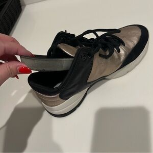GEOX Respira walking sneakers, buttery soft leather, muted gold tone and black, size 7