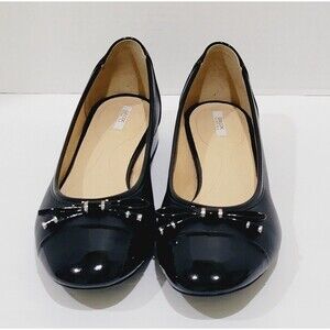 GEOX Womens Lola Black Ballet Flats w Bow Size 38 8 Patent Leather Cap Toe Heels