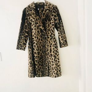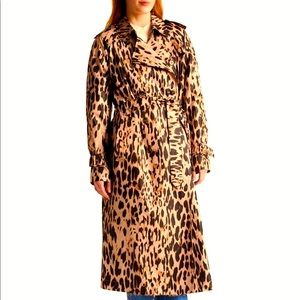 GERARD DAREL Leopard Print Faux Fur Trench Coat