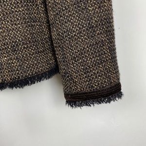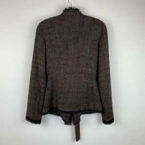 GERARD DAREL Tweed Fringe Tie Belted Blazer 36 Jacket Career Preppy Brown