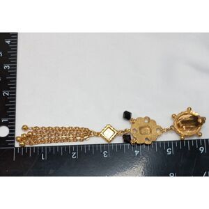 Dazzling crystals against a matte finish goldtone and shiny black enameling