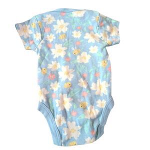 Darling little bodysuit has the sweetest pattern of pink, white and yellow flowers and chubby bumblebees floating on a robin's egg blue sleeper. Short aleeves, so it's perfect for spring or summer and onesies are an essential in any new baby's wardrobe!