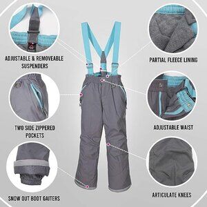 GERRY Girls' Performance Snow Pants with Removable Suspenders Ski Snowboard Size XS 5-6 NWOT