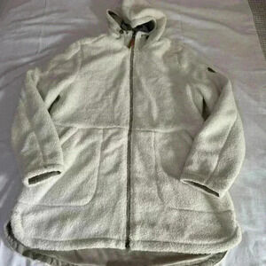 GERRY Women's Berber Fleece Jacket Cream Size Large Outdoor Pockets Hooded