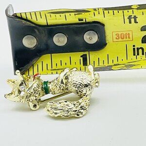 GERRYS Laughing Fox Pin Gold Tone Red Tongue Green Collar Rhinestone Eyes