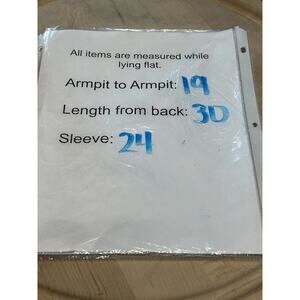 Items are listed by factory tag, but measurements are included. These are approximate measurements and may vary from tag size. Please review these prior to purchasing.