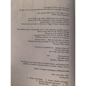 "Getting Clear" by Anne Kent Rush is a first edition paperback book published by Random House Bookworks in 1973. The book explores the topic of health from a feminist perspective, making it a valuable addition to collections focusing on body work for women. Written in English, this North American publication offers readers insights on personal and societal issues related to women's bodies and well-being, making it a sought-after item for those interested in feminist literature and self-discovery.