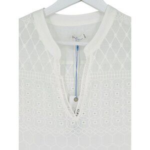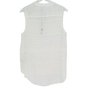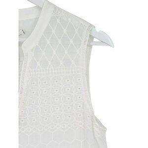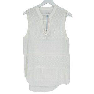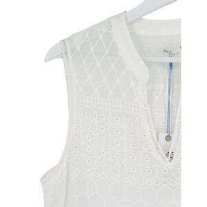 GF Collection Tank Top Off White Embroidered Eyelet Sheer High Low V-Neck Size M