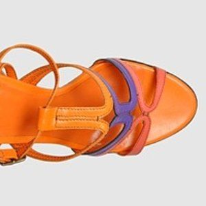 Auth NIB GF Ferre Multicolor Leather Metal Heel Sandals Pumps
