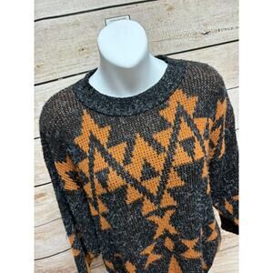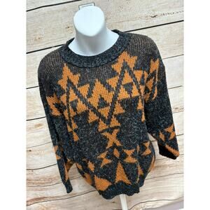 This vintage pullover sweater from GFC is a must-have for any 80's lover. The tight-knit geometric pattern, crew neckline, and cap sleeves give it a unique and stylish look. Perfect for a casual day out or a ugly sweater party, this sweater is made of machine washable acrylic material that is easy to care for. The bright orange color accents makes it perfect for the fall and winter season, and the sweater fits regular size women. The knit style and fabric type make it a durable and long-lasting addition to any wardrobe. Whether you're looking to add to your collection of ugly sweaters or just want a cozy and stylish piece, this CFC long sleeve vintage pullover sweater won't disappoint. The pit to pit measurements are 20" and the total length is 24"