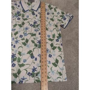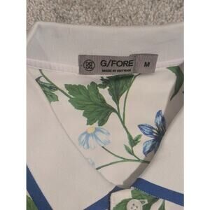 G/FORE Blue Floral Polo Medium Snow Basil Country Club Men's White Blue Green