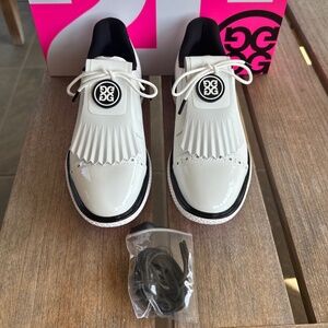 G/FORE Gallivan2r Brogue Kiltie Cap Toe Golf Shoe Women's 7.5 Snow / Onyx NEW