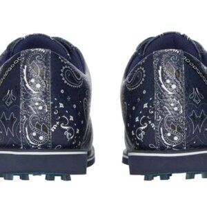 Step onto the golf course in style with these brand-new G/FORE Ladies Bandana Gallivanter Golf Shoes in a classic navy-blue bandana print. Designed for performance and comfort, these shoes are perfect for making a statement while enhancing your game.