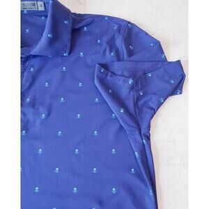G/FORE Polo Golf Shirt All Over Skull & Crossbones Print Mens Medium *Minor Flaw