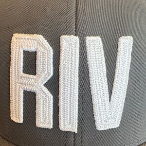 Stylish G/FORE golf hat. Prominent white embroidered letters. Side Riviera Country Club logo. Structured crown with curved brim. Clean, sporty look for the course.