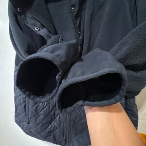 Stylish and functional G/FORE women’s quilted fleece hybrid jacket, style G4LF22O40. Primaloft, Soft fleece upper, quilted lower, full-zip front with snap storm placket, zippered pockets, and adjustable drawcord hem. Iconic G/FORE logo patch at sleeve. Excellent condition, size large, no flaws. Retails for $325. Ideal for golf, travel, or everyday chic layering.