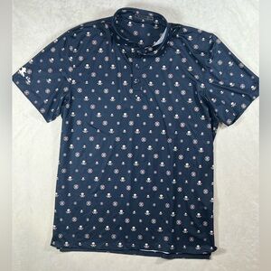 G/FORE XL Blue Polo Skull Logo All Over Print Golf Performance Shirt C10