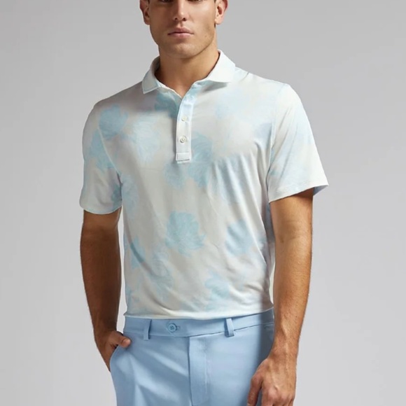 G/Fore Men's XL Stone Stamped Floral Tech Jersey Polo MSRP $120