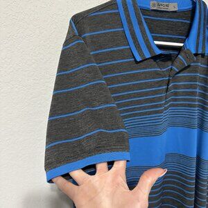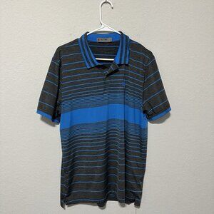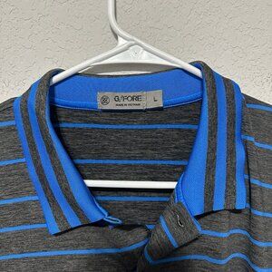 GFore Polo Shirt Mens Size Large Gray Blue Striped Tree Logo Athletic Golf