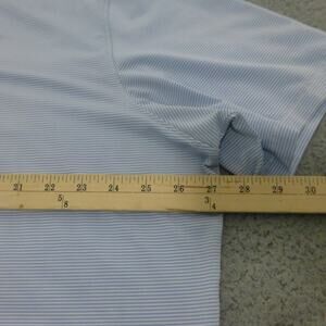 G/Fore Shirt Mens XXL Polo Golf Striped Blue Performance Golden Bear Club. Good preowned condition. Some light spots on back and small mark on front. See pics for measurements and details.