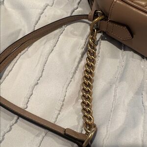 GG MARMONT SMALL SHOULDER BAG Gucci Beige Quilted Crossbody Bag with Gold Logo