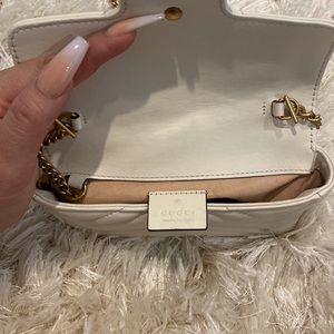 Gucci Mini in White chevron leather, great condition. ***Authentic*** Worn it twice… it can be worn crossbody or as a belt bag. Lost the box during the move. Very cute for the summer! Please let me know if you have any questions.