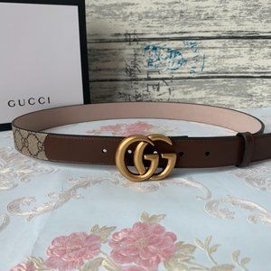 Classic GG Supreme canvas with brown leather, brass double G buckle with canvas belt, mix and match style you deserve. Serial number: 625839214351