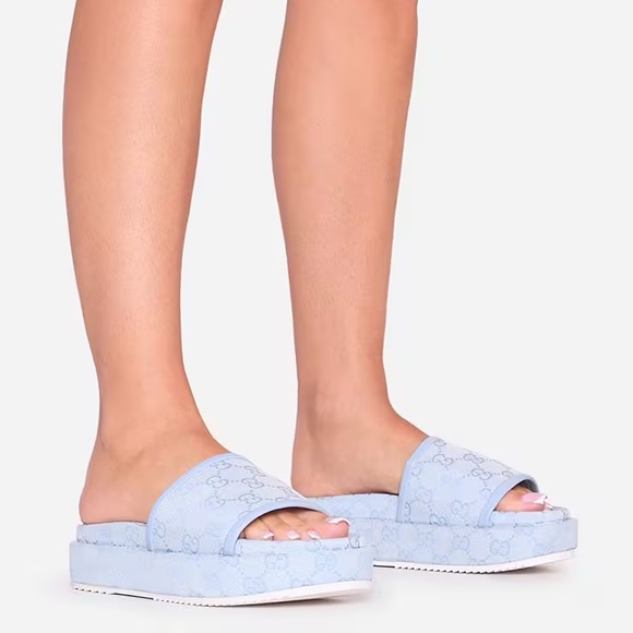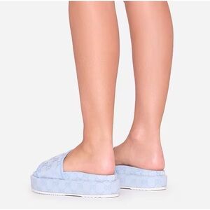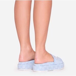 Bring the vibe with every step in these blue fabric flatform sliders. Featuring peep toe design, they're the ultimate combo of comfort and standout style, doll.