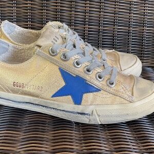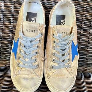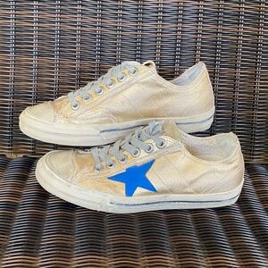 GGDB GOLDEN GOOSE V STAR2 GOLD BLUE METALLIC LEATHER STAR CANVAS LOW TOP SNEAKER