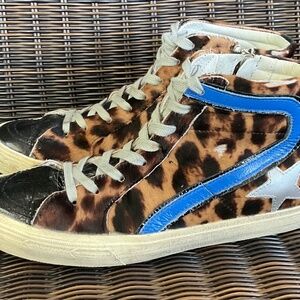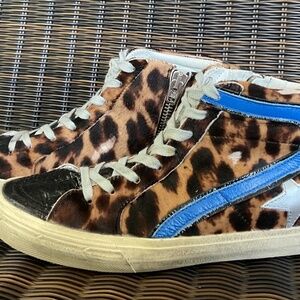 GGDB Golden Goose Slider Star Leather & Leopard Print Calf Hair High Top Sneaker