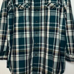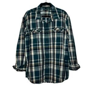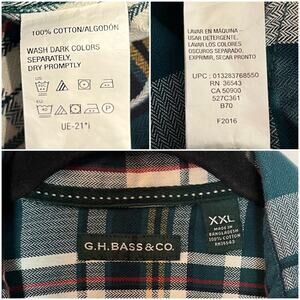 G.H. BASS & CO. 100% Cotton Men's Durable Mountain Button Down Shirt Size XXL Green Plaid
