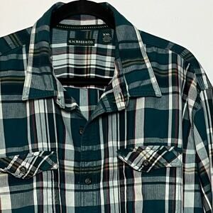 G.H. BASS & CO. Button Down Shirt Men's Size XXL 100% Cotton Plaid Green