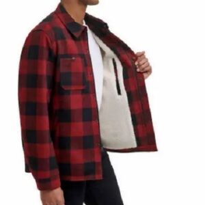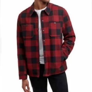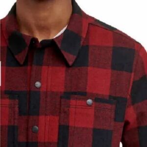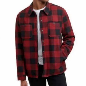 G.H. BASS WOOL BLEND SHERPA LINED SNAP ZIPPER BUFFALO RED BLACK CHECK JACKET M