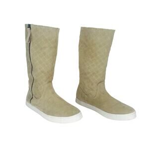 🐝 G.H. BASS Zina Women Tan Winter Sneaker Boot Size 9.5 Quilted Suede Cozy Faux Fur Lining Outside Zipper Closure, New