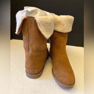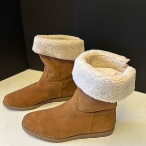 G.H. Bass Aria fold down ankle tan boots suede/leather & sherpa trim Sz-10M. L