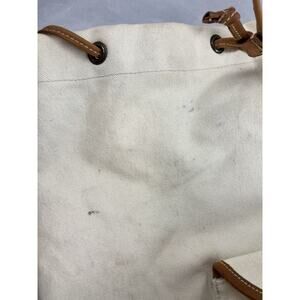 GH Bass Canvas Backpack Rucksack Drawstring Closure Bucket Style Leather Trim