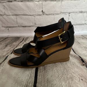 G.H. Bass & Co. Black Renae Wedge Sandals, Size 6, Pre-owned