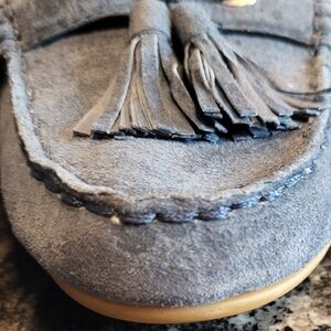 G.H. Bass Co. Bonnie Light Blue Suede Leather Slip on Moccasins Loafers with Tassels, Sz. 7 Grrat every day shoe! Pre-owned. Some wear but good condition! See pictures!