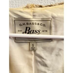 Cozy and stylish faux fur vest from G.H. Bass & Co. in women’s size Small. This 100% polyester vest features a light brown base with darker vertical streaks for a natural, textured look. Designed for layering, it offers warmth without bulk. Measures 19” pit to pit and 28” long. Made in China. A versatile piece perfect for fall and winter outfits.
