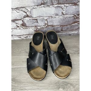 G.H. Bass & Co. MaryAnn Black Leather Wedge Slip On Sandals Women Sz 8M US/39EU