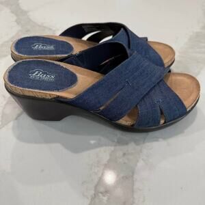 G.H. Bass & Co. MaryAnn Denim Wedge Slip On Sandal Womens 8.5M Navy Blue Classic