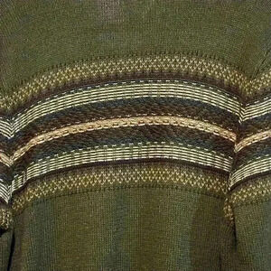 G.H. Bass & Co Men 1/4 Button Sweater LARGE Forest Green Striped Pullover Winter