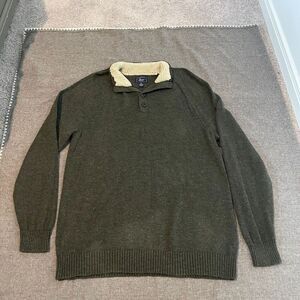 GH Bass & Co Men's Size XL 1/4 Button Knit Sweater Green Sherpa Mock Neck Collar