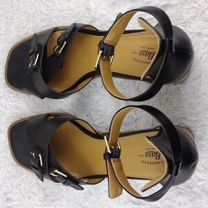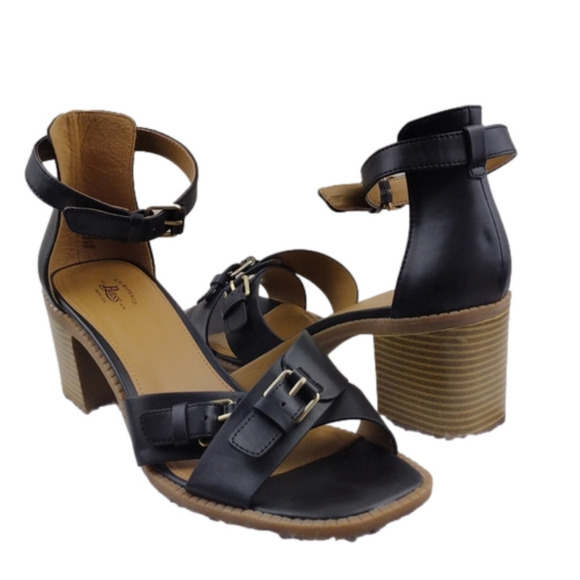 G.H. Bass & Co. Penelope Black Open Toe Ankle Strap Block High Heel Sandal Shoe