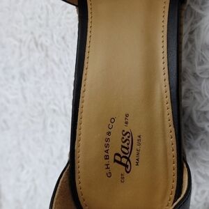 G.H. Bass & Co. Penelope Black Faux Leather Square Open Toe Two Crisscross Faux Buckle Upper Three Hole Buckle Ankle Strap Block High Heel Sandals. Sole Looks To Be Store Shelf Wear. Measurements approx. Heel: 3", Length: 10.5 Size 10M. Color May Vary Due To Lighting.