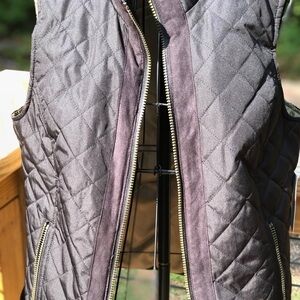 Has suede detail down the front of the vest beside the zipper.