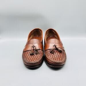 GH Bass & Co Shoes Mens 11.5 Brown Leather Woven Tassel Loafers Moc Toe Slip On