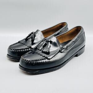 GH Bass & Co Shoes Mens 9.5 Black Leather Loafers Layton Tassel Moc Toe Kiltie