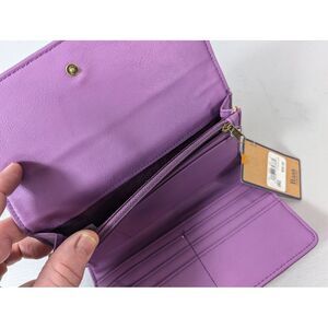 GH Bass & Co Trifold Wallet Black Purple Leather with Zipper Coin Purse NWT
